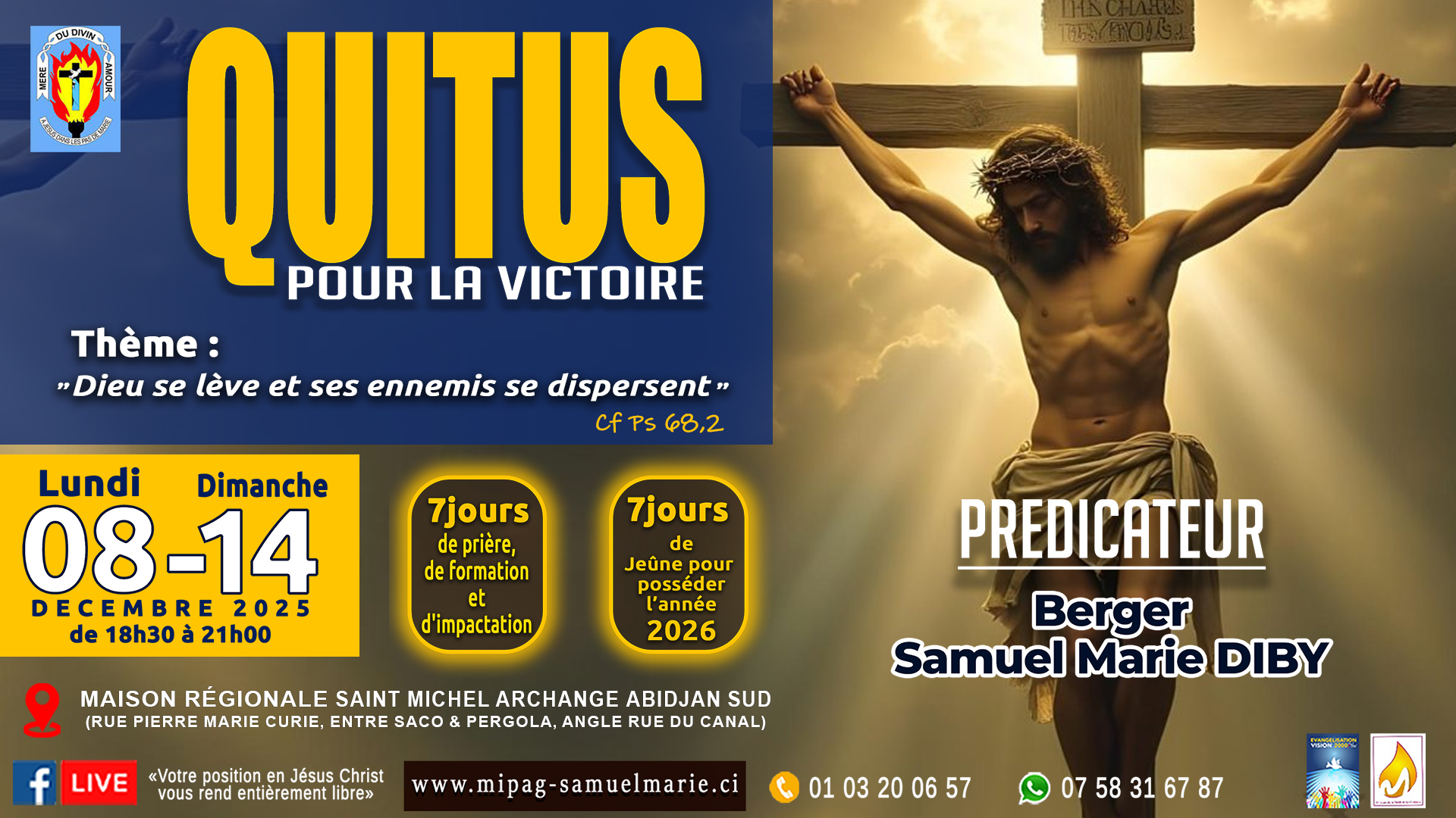 Séminaire : SEMINAIRE DE DEBLOCAGE ET DE DELIVRANCE                                                          Temps de prière : SPECIAL TEMPS D'ALLIANCE                                                          Temps de prière : "Dieu se lève, ses ennemis se dispersent, ses adversaires fuient devant sa face"